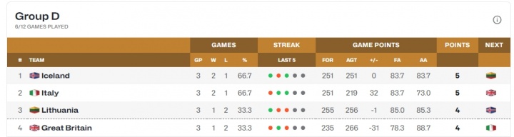 冰岛世界排名第45,立陶宛世界排名第9。冰岛此前击败了意大利,但输给英国,目前排名小组第1。